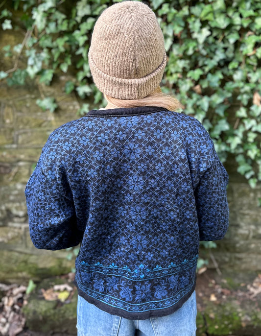 Vintage Icelandic Design 100% Wool Cardigan Blue Beige - Size L