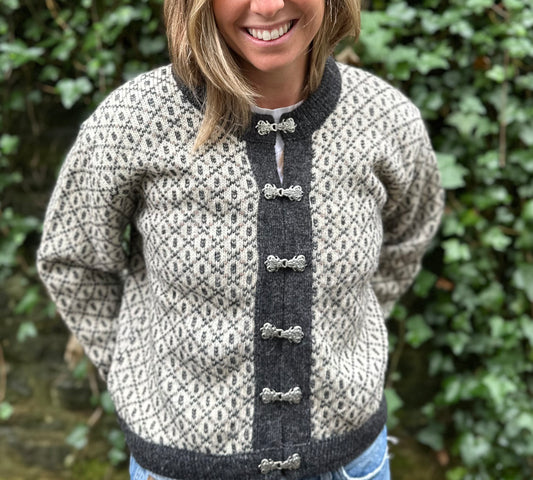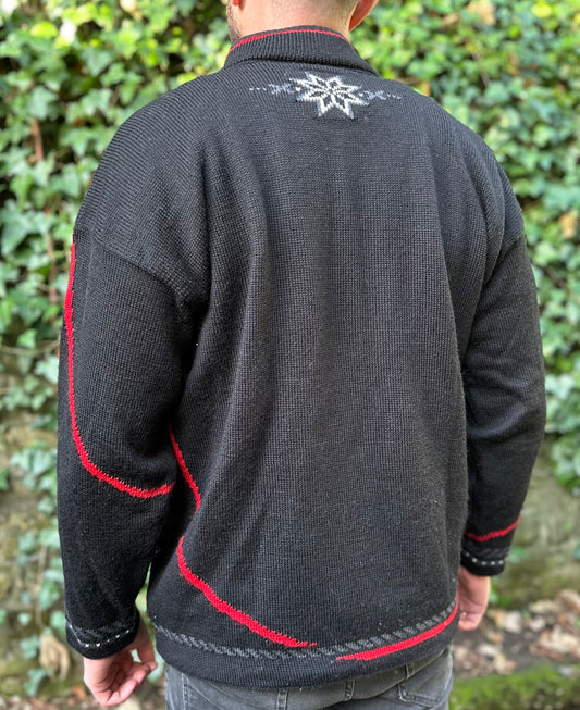 Vintage Skyr Nordic Fair-Isle Cardigan in Grey Red - Size M