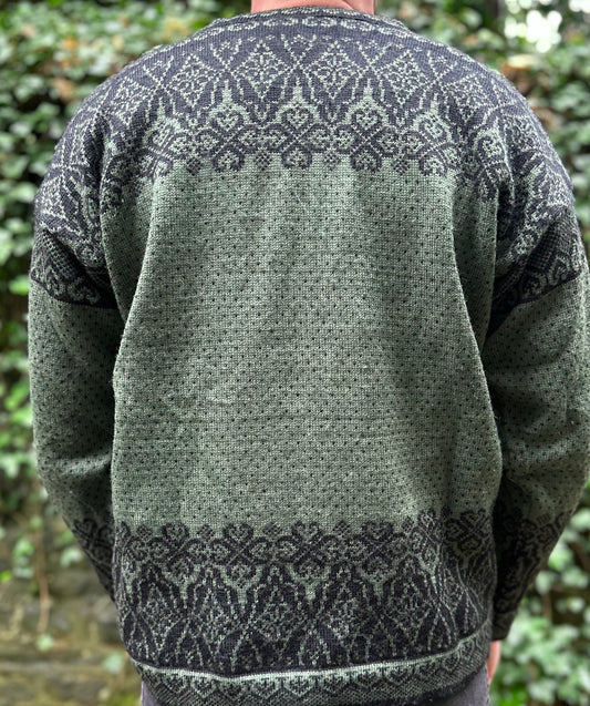Vintage Norwegian 100% Wool Vrikke 1/4 Zip Sweater in Dark Green Black - Size M/L
