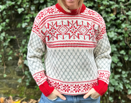 Vintage Dale Of Norway 100% Wool Fair-Isle in Red White Grey - Size S