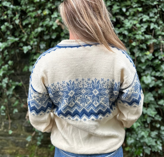 Vintage Dale Of Norway Blue Fair-Isle Nordic Cardigan in Size L