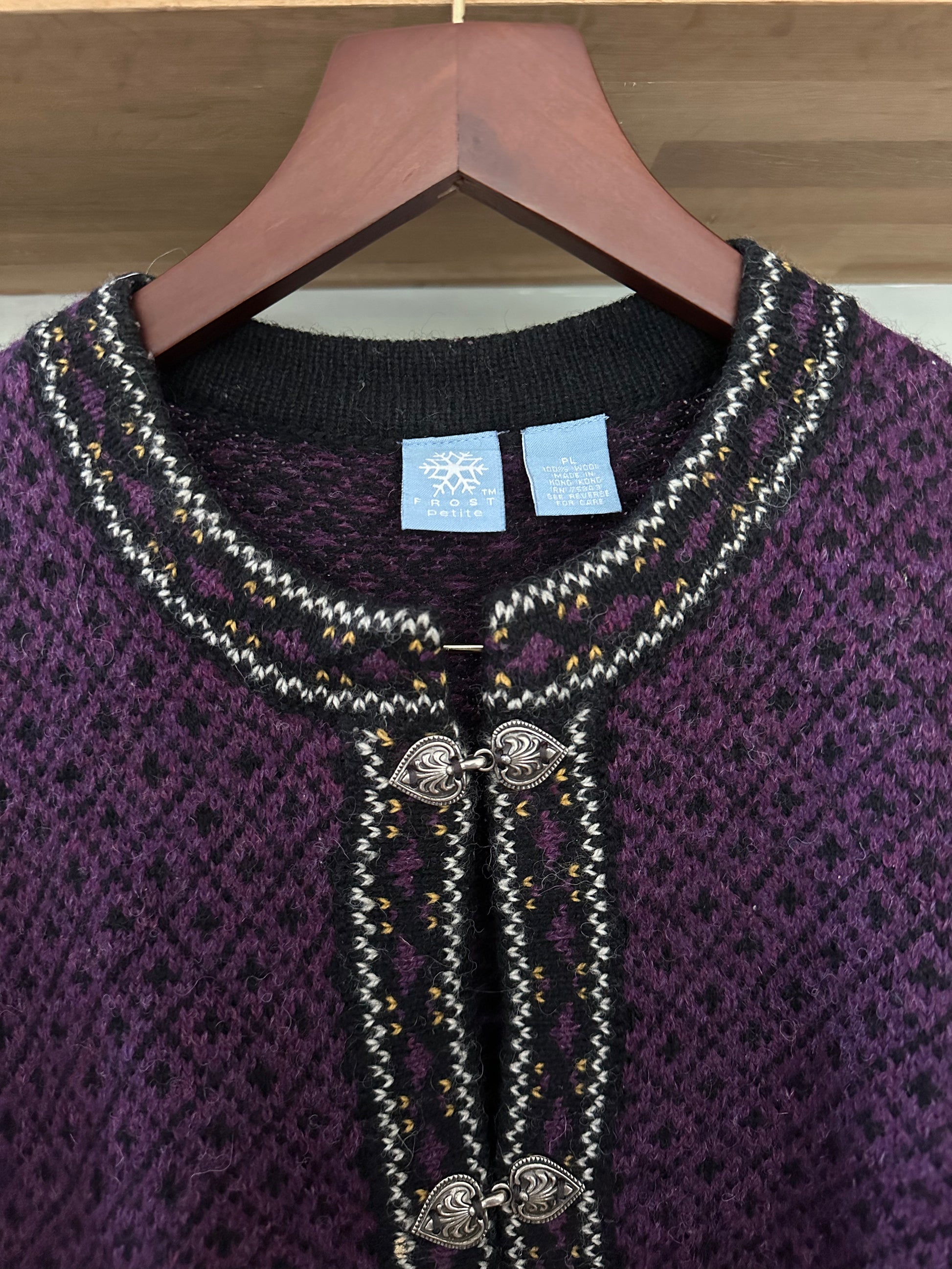 Vintage Nordic Frost 100% Wool Cardigan Purple / Black in Petite L